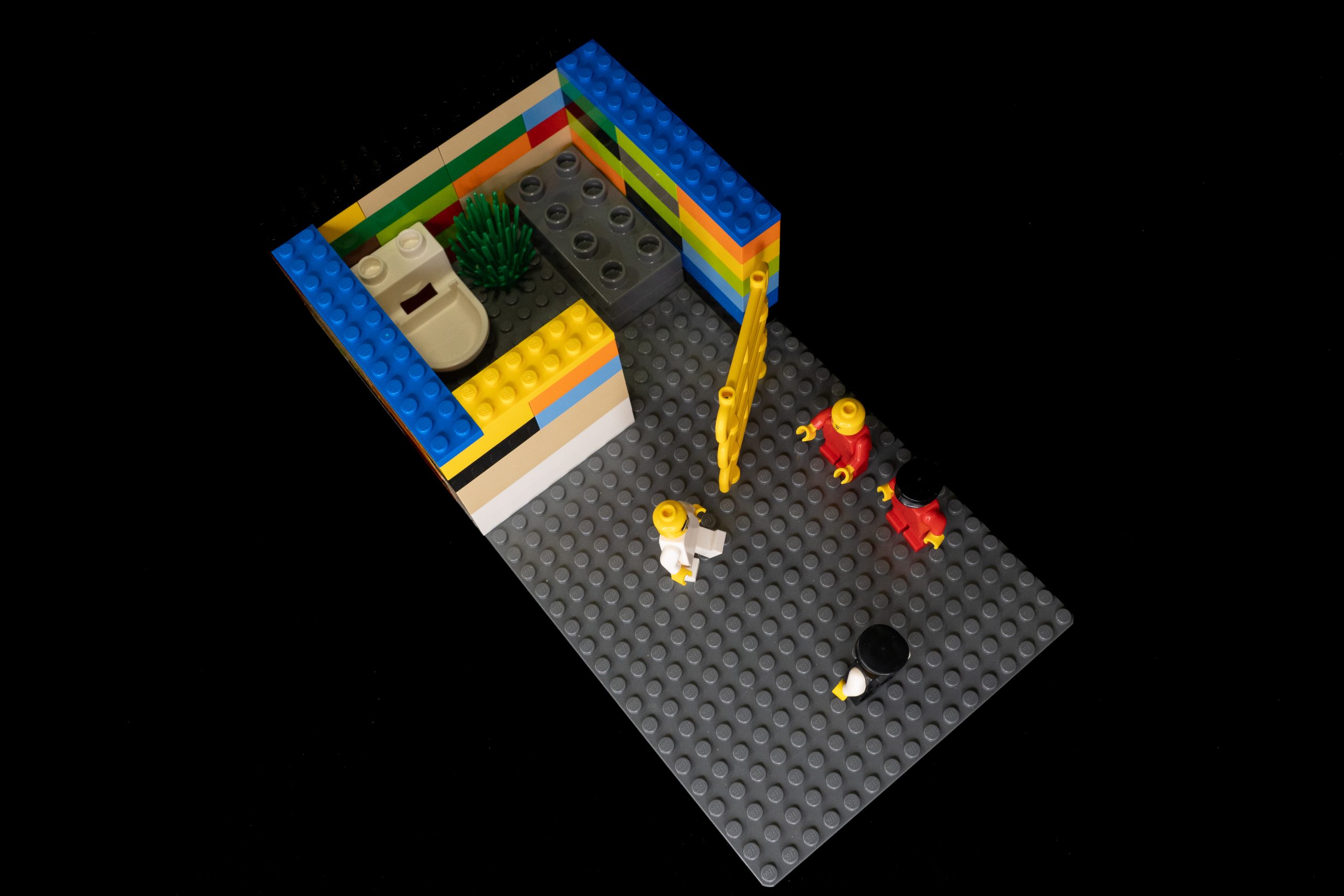 Questo modellino rappresenta un conflitto che ho vissuto con due controllori in stazione. Volevo solo andare in bagno, ma loro mi hanno chiesto in modo insistente e poco gentile se avessi il biglietto. Mi sono sentito sotto pressione e, per evitare il confronto, mi sono chiuso in bagno mentre continuavano a parlare dall’esterno. Quando sono uscito, però, non c’erano più.